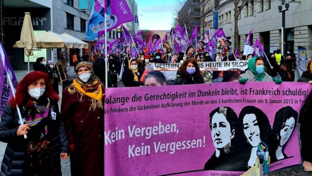 Avrupa’nın 11 merkezinde, eşzamanlı olarak TJK-E (Avrupa’daki Kürt kadınlar hareketi) çağrısı ile Stuttgart’ta da yapılan protesto eyleminin geçtiği yerlerde sokaklar mora büründü. En büyük talep ise, büyük pankartta yazılı Olan ‘’Adalet karanlıkta kalıp aydınlanmadıkça, Fransa suçludur!’’ oldu. Bu vesileyle Paris ve ‘’katilleri hep aynı’’ denilen Silopi’de katledilen, Pakize Nayır, Fatma Uyar ve Seve Demir adlı devrimci kadınların büyük posterleri de yine kadınlar tarafından taşındı.
