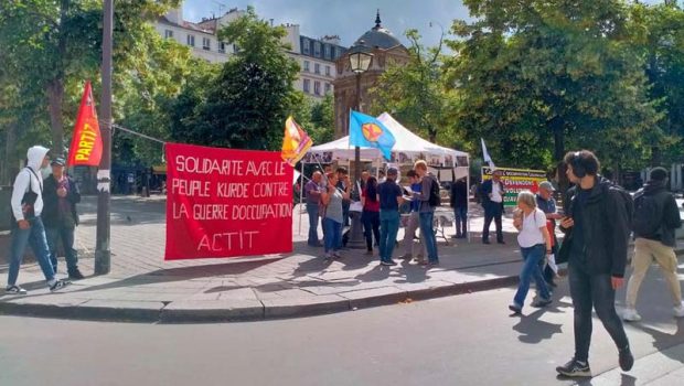 Avrupa Ezilen Gömenler Konfederasyonu’na (AVEG-KON) bağlı olarak çalışmalarını Fransa’nın başkenti Paris’te sürdüren Türkiyeli Göçmen İşçiler Kültür Derneği (ACTIT), Türk devletinin Medya Savunma Alanları ve Rojava’ya dönük işgal saldırılarını protesto etmek amacıyla çadır eylemi gerçekleştirdi.