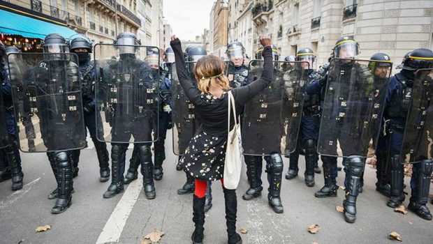 Anadolu Ajansı’nın haberine göre, sosyal medyaya yansıyan görüntülerde, polisin, Paris’teki gösterinin başında sarı yeleklilerin kortejinin ilerlemesine izin vermediği ve daha sonra göstericilere biber gazıyla müdahale ettiği yer alıyor.