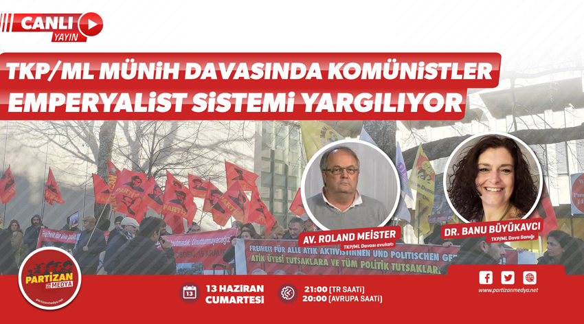 Münih TKP/ML davasında son duruma dair, dün 13 Haziran Cumartesi, Avrupa Saati ile saat 20.00 de iki dilli (Almanca ve Türkçe) olarak http://www.partizanmedya.net/ de bir CANLI yayın gerçekleştirildi.