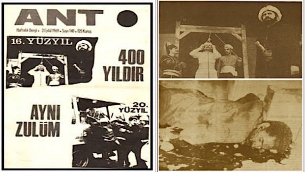 Bu devlet terörü uygulamasını 2 Eylül 1969 tarihli Ant Dergisi’nde tüm ayrıntılarıyla yansıtırken bundan dört yüzyıl önce Pir Sultan Abdal’ın ceberrut Osmanlı yönetiminin halk düşmanı zalimlerine meydan okuyan şu dizelerini paylaşmıştık: