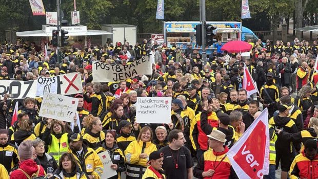 Almanya’da Deutsche Post şirketinin çalışanları, taleplerinin hükümetin çıkarmak istediği yeni posta yasasında yer alması amacıyla gösteri düzenledi.