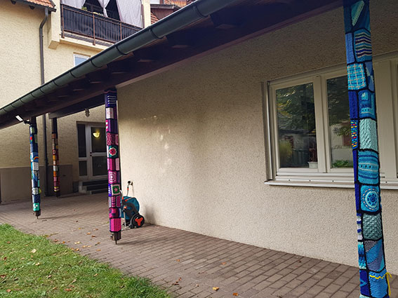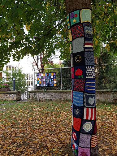 Adına gerilla örgüsü denilen yünle örme sanatı yeniden aktüelleşti. Amerika’da başlayan ve son yıllarda Avrupa’nın da bir çok şehirlerinde yapılmaya başlanan, sütün, ağaç ve benzeri şeyleri süslemek için aksesuar olarak kullanılan yün ipliği örgüsü motifleri Remseck/Aldingen Protestan kilisesi bahçesini de süsledi.