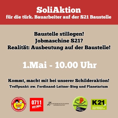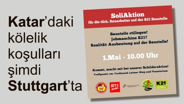 Stuttgart’ta yarın S21 şantiyelerinde kölelik koşullarında çalışmaya karşı dayanışma mitingi var.