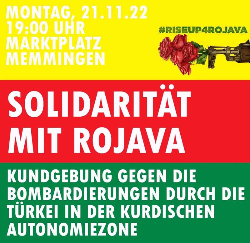 Sömürgeci Türk devletinin faşist iktidarı tarafından Rojava’ya havadan yapılan saldırı sonucu yüze yakın sivil insan da hayatını kaybetti. Yaşanan bu katliam, Partizan taraftarlarının da içinde bulunduğu, anti faşist grup tarafından Memmingen şehir merkezinde protesto edildi.
