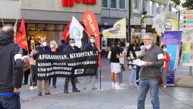 Ulm’da MLPD ve Internationalistiche Bündnis (InterBündnis) tarafından düzenlenen “Savaş Karşıtı” eyleme, Ulm yerelinde ADHF, AGİF, ATİF ve KON-MED’in yer aldığı Avrupa Demokratik Güç Birliği (ADGB) de destek verdi. Rebell, SKB, YDG, Young Struggle ve HDP aktivistleri de etkinlikte yer aldı.
