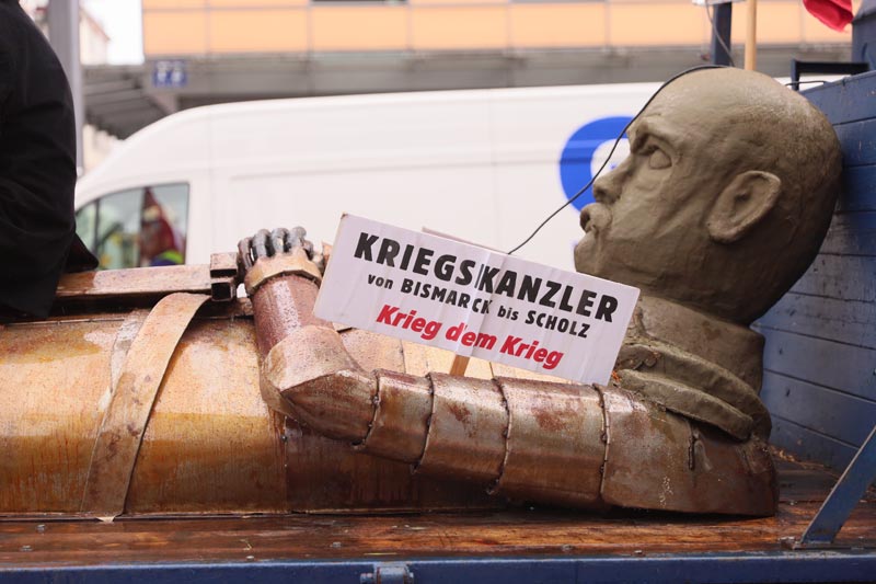 12 Eylül perşembe günü Manhheim şehir merkezinde yapılan yürüyüşte bir kamyonetin arkasında temsili Lenin heykeli ve temsili Lenin hayaleti el sallayarak halkı selamlarken , sık sık “Savaştan çıkış yolu direniştir” sloganı atıldı ve bildiriler dağıtıldı.
