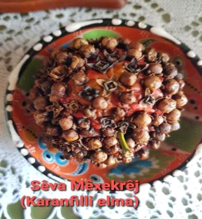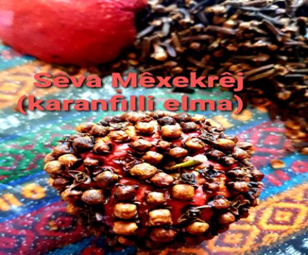 Eski İran Kürtlerinin tarihinde yılın istenilen her hangi bir gününde âşıkların, sevgililerin, sevdiklerinden ayrı düşenlerin; aşkını, sevdasını, sevgisini dile getirmek, yeniden hatırlatmak için sunduğu bir kadir kıymet bilirlik nişanesi imiş Kürtçe adıyla Sêva Mêxekrêj (Karanfilli Elma). Küçük boy bir kırmızı elmanın her bir yanı en küçük boşluk bırakılmamak kaydıyla çok sık, birbirine bitişik olmak şartıyla karanfiller saplanarak donatılıyor. İşlem bittikten sonra kuru karanfilin kokusu, taze elma kokusuyla buluşunca hoş bir rayiha ortama yayılıyor. Üstelik bu iki ürünün buluşma halinin kokusu da çok uzun süre bulunduğu ortamdan kaybolmuyor. Hatta bu konudaki söylemlere bakılırsa bu karanfille dokunmuş elmanın “yüz yıl dahi geçse” kokusunu kaybetmediği iddia ediliyordu.