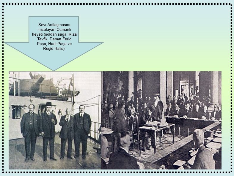 10 Ağustos 1920 tarihli Sevr Antlaşmasını imzalayan Osmanlı heyetinden Rıza Tevfik, Damat Ferid Paşa, Hadi Paşa ve Reşid Halis gilindiği gibi vatan haini ilan edildiler.