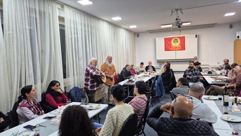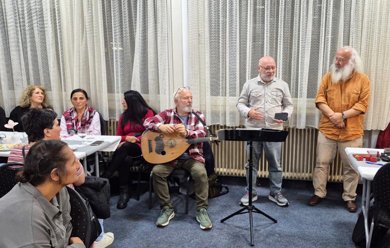 Şenol Morgül ise ud eşliğinde söylediği parçalarla bu anlatılara duygusal derinlik kattı. Katılımcılar, Morgül’ün kimi zaman hüzünlü, kimi zaman isyan yüklü şarkılarına eşlik etti; salonda yer yer alkış, yer yer sessizce akan duygular yankılandı.