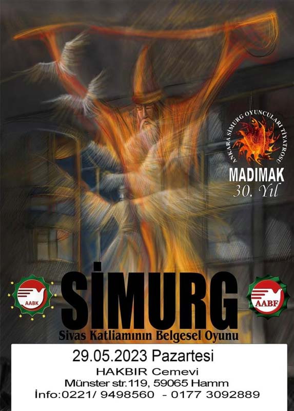Sıvas Katliamı’nın 30’ncu yıl dönünümü yaklaşıyor. Simurg Oyuncuları Tiyatrosu bugün Hamm’da, yarın Frankfurt’ta.