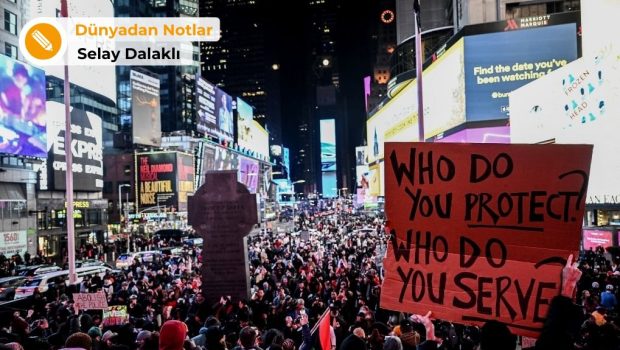 Fotoğraf: “Kimi koruyorsunuz? Kime hizmet ediyorsunuz?” Nichols’ün ölümünün ardından New York’taki protestolardan.