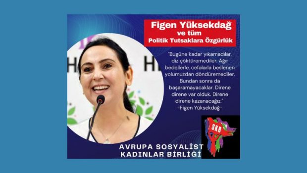 Avrupa Sosyalist Kadınlar Birliği (SKB), yaptığı açıklamayla Figen Yüksekdağ ve tüm politik tutsaklara özgürlük çağrısında bulundu.
