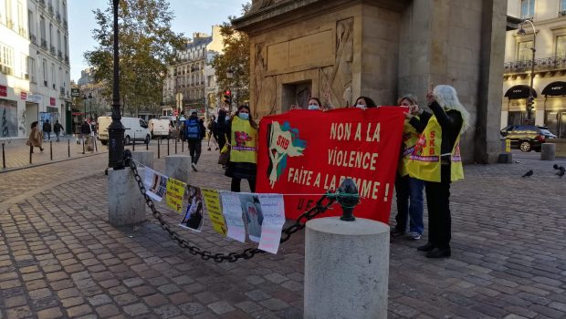 Fransa’nın başkenti Paris’te, Strasbourg Kemeri önünde SKB üyeleri, 25 Kasım’da sokak çağırdı. Kadınlar şiddete karşı öz savunma ve İstanbul sözleşmesinin uygulanması taleplerinin yer aldığı afişleri meydana astı.