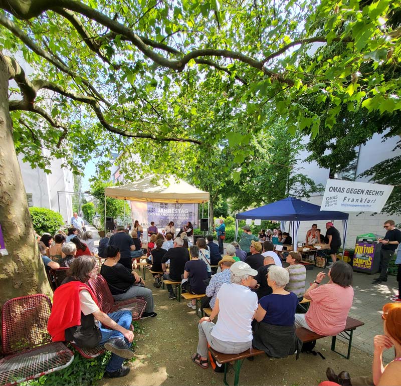 F-AKM (Frankfurt Alevi Kültür Merkezi), DGB (Alman Sendikalar Birliği), DİDF (Demokratik İşçi Dernekleri Federasyonu), Hessen Sığınmacılar Konseyi, Bockhenheim’ın Geleceği Girişimi, IG Metall (Metal İşçileri Sendikası) ve Ver.di (Birleşik Hizmetliler Sendikası) sendikalarının Göçmenler Komitesi, Sağa Karşı Büyükanneler derneği, Açık Kültürler Evi, Punggeong Dünya Kültürleri, gençlik derneği Saz-Rock, açık denizlerdeki sığınmacıları kurtarma örgütlerinden Frankfurt Deniz Köprüsü, Frankfurt Büyükşehir Belediyesi‘nin Çok Kültürlülük Dairesi, Ayrımcılıkla Mücadele Birimi ve Gençlik Birliği, Türk Halkevi, VVN (Nazi Rejimi Mağdurları Derneği), Antifaşistler Birliği, Rhein-Main’da Irkçılığa Karşı Direniş girişimi, Cafe Exzess, Response Hessen (Hessen’in Cevabı) girişimi….