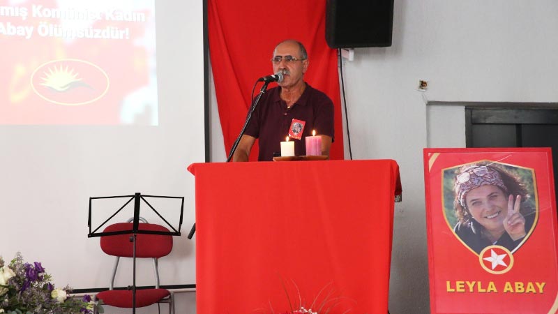 Leyla Abay’ın yoldaşı ve hayat yoldaşı Necati Abay söz aldı. Anmaya katılanları selamlayan Abay, “Onun anısı önünde bir kez daha saygıyla eğiliyorum. Burada bir kez daha sizlerin huzurunda, Leyla yoldaşımız ideallerine bağlı kalacağımın, değerlerini yaşatacağımın sözünü veriyorum” dedi.