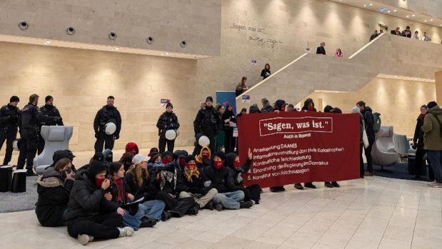 Rojava’ya yönelik işgal saldırılarına karşı sosyalist ve enternasyonalist gençler Almanya ve Avusturya’da Spiegel ve ORF medya kuruluşlarını işgal etti. İşgal eyleminde, Rojava’da işgal ve katliam saldırıları gerçekleştirildiğine dikkat çekilerek, medya kuruluşlarına gerçekleri yazmaları çağrısı yapıldı.