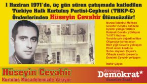 1 Haziran 1971’de, üç gün süren çatışmada katledilen Türkiye Halk Kurtuluş Partisi-Cephesi (THKP-C) Önderlerinden Hüseyin Cevahir Ölümsüzdür! Hüseyin Cevahir (1945;