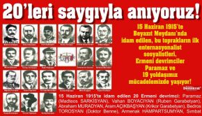 20’leri saygıyla anıyoruz! 15 Haziran 1915’te Beyazıt Meydanı’nda idam edilen, bu toprakların ilk enternasyonalist sosyalistleri, Ermeni devrimciler Paramaz ve 19