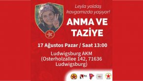 Yaşamını yitiren sosyalist kadın Leyla Abay için Stuttgart’ta taziye düzenlendi. Ludwigsburg Alevi Kültür Merkezi’nde pazar günü anma etkinliği düzenlenecek. AVEG-KON