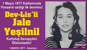 1 Mayıs 1977 Katliamında Panzerin ezdiği ilk devrimci: Dev-Lis’li Jale Yeşilnil… Kurtuluş Savaşçıları Ölümsüzdür! 1 MAYIS 1977 – İstanbul