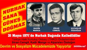 Türkiye Halk Kurtuluş Ordusu (THKO) Önderlerinden Sinan Cemgil, Kadir Manga ve Alparslan Özdoğan 31 Mayıs 1971’de Nurhak Dağında Katledildiler… Devrim