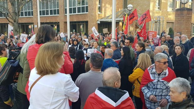 “Bugün burada, Türkiye’de yargı eliyle gerçekleştirilen sivil darbeyi protesto ediyoruz!” diyen katılımcılar, “Ekrem İmamoğlu’nun yanındayız! Bu karar siyasidir, adalete darbedir!” sloganlarıyla meydanı inletti.