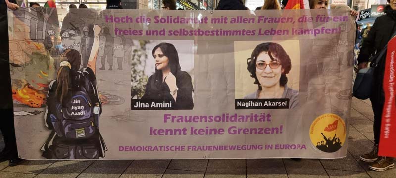 Miting alanında yürüyüşe geçen yüzlerce kadın ve erkekten oluşan enternasyonal kitle, saat 19 civarında geldiği Küçük Schlossplatz meydanında, DGB sendikası yöneticisin yaptığı konuşma ve Jin Jiyan Azadi, Mücadele eden kadınlar, yaşayan kadınlardır! Sloganları eşliğinde eylem olaysız olarak sona erdi.