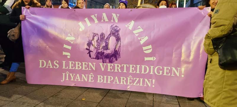 Jin Jiyan Azadi – Mücadele eden kadınlar, yaşayan kadınlardır. Dünyanın her yerinde olduğu gibi Almanya’nın Stuttgart kentinde de 25 Kasım Dünya’da Kadına şiddete hayır! günü şehrin iki merkezinde yapılan miting ve yürüyüşlerle protesto edildi.