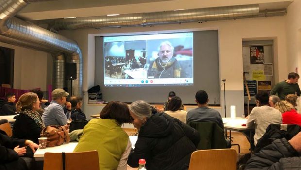 Almanya’nın Stuttgart şehrinde “Deprem değil rant öldürür, dayanışma yaşatır” kampanyası kapsamında Lilo Hermann konferans salonunda düzenlenen akşam yemeğinde bir araya gelindi. Etkinliğe HDP İzmir Milletvekili Murat Çepni, ESP / SKM sözcüsü Çiçek Otlu Skype ile katıldı. Sosyalist gençlik örgütü Young Struggle temsilcisi de etkinlikte bir sunum yaptı.