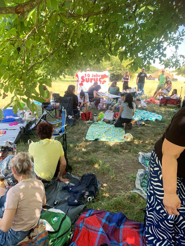 “Dostların arasındayız, Güneşin Sofrasındayız” çağrısıyla düzenlenen piknikte ortak sofra kuruldu. Katılımcılar kardeşçe bölüşüp paylaşılan ortak sofradan payına düşeni aldı. Güneşin Sofrasında sohbetler edildi, güncel politik gelişmeler değerlendirildi. Etkinlikte Stuttgart yerel müzik grubu kitleyle birlikte türküler ve marşlar söyledi. Ezgilerin ardından halaylar çekildi. Çocuklarla oyunlar oynandı.