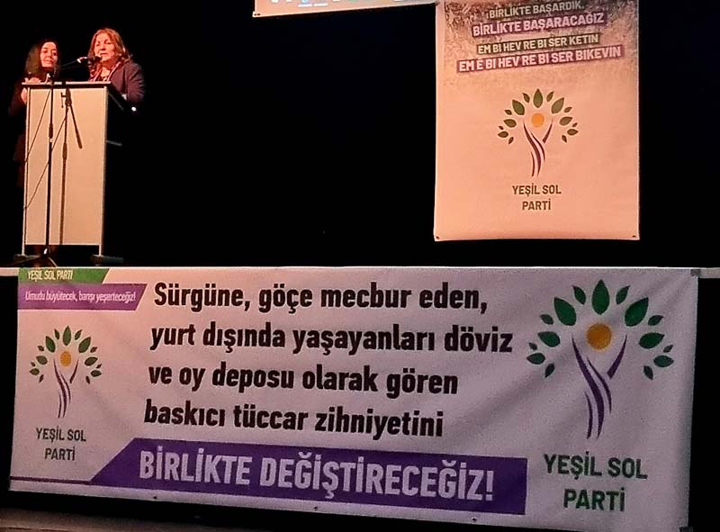 Arena kültür salonunda 10 Nisan’da düzenlenen halk toplantısında ilk konuşmacı Almanya Parlamentosu Die Linke partisi milletvekili Gökay Akbulut yaptığı konuşmasında özellikle Die Linke/Sol Parti’nin HDP ve dolayısı ile Yeşil Sol Partiye desteğini dile getirerek,’’Almanya hükümeti ve Avrupa birliği Türkiye’nin AKP-MHP iktidarı altında otoriter bir rejime dönüştüğünü ve insan hakları ihlallerini gayet iyi görüyor. Erdoğan yıllardır Kürtlere, Ermenilere, Alevilere, işçi-emekçilere ve kadın- gençlere saldırıyor. Doğa Türkiye’de talan ediliyor. Depremlerde binlerce insan can veriyor ve ülke bir kaosa götürülüyor. İşçiçilerin grevleri yasaklanıyor, gazeteciler ve akademisyenler tutuklanıyor. Biz geçmişte olduğu gibi bugün de Die Linke partisi olarak HDP’yi ve bu seçimlerde de Yeşil Sol Partiyi destekliyoruz. HDP’nin kapatılmak istenilmesi bir skandaldır ve şiddetle kınıyoruz. Seçimlerin demokratik şartlar altında yapılması için Emek ve Özgürlük ittifakını destekliyoruz. Önümüzdeki haftalarda da çalışmalarını destekleyeceğiz. Türkiye’ye de seçimlere gözlemci heyetler göndereceğiz. Ayrıca Stuttgart, Mannheim, Karlsruhe ve Baden Württemberg eyaletindeki diğer bürolarımızı seçim çalışmaları için açık tutacağız. Biz kadınız, genciz, işçiyiz, doğayız, biz halkların kardeşliğiyiz, biz kazanacağız!’’ dedi.