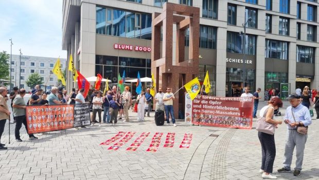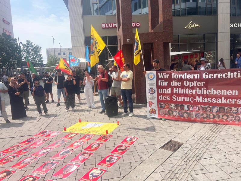 Kobanê’nin yeniden inşası için Sosyalist Gençlik Dernekleri Federasyonu (SGDF) öncülüğünde 2015’te Suruç’ta bir araya gelen gençlere yönelik IŞİD tarafından gerçekleştirilen canlı bomba saldırısının üzerinden 10 yıl geçti. Katliamda yaşamını yitiren 33 sosyalist, Ulm kentinde Albert Einstein Anıtı önünde düzenlenen mitingle anıldı.