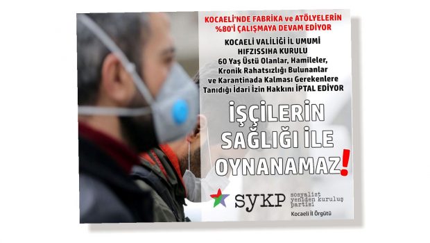 Sosyalist Yeniden Kuruluş Partisi (SYKP) Kocaeli İl Örgütü tarafından yapılan açıklamada “İşçilerin ve Çalışanların Sağlığı İle Oynamaktan Vazgeçin!” dendi.