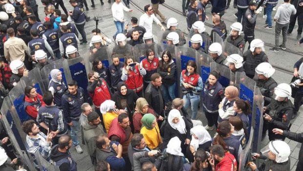 ‘Kimyasal silah’ iddialarının bağımsız heyetler tarafından incelemesini talep eden parti ve kitle örgütleri, İstiklal Caddesi’nde de engellendi. Polis çok sayıda kişiyi gözaltına alırken haber takibindeki gazetecilere de müdahale edildi.