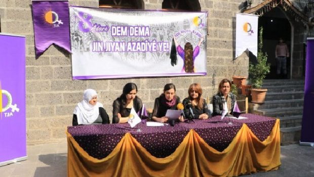 Özgür Kadın Hareketi (TJA), 8 Mart Dünya Kadınlar Günü’ne ilişkin deklarasyonunu Dicle Kültür Sanat Derneği’nde kamuoyuyla paylaştı.
