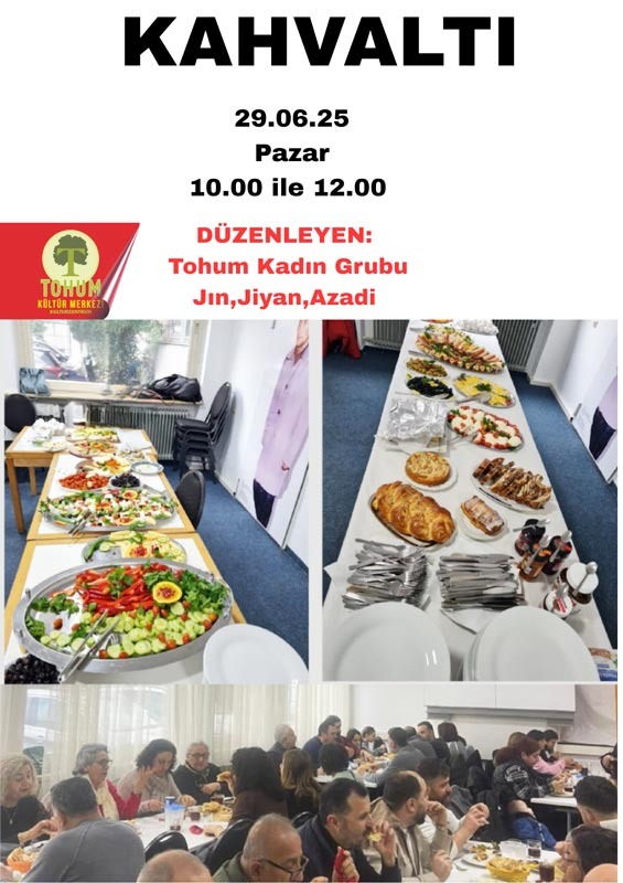 Almanya Türkiyeli İşçiler Federasyonu (ATİF)’e bağlı olarak faaliyet gösteren Tohum Kültür Merkezi bünyesinde yeni kurulan ve çalışmalarına devam eden Tohum Kadın Grubu, 29 Temmuz Pazar günü bir dayanışma kahvaltısı düzenliyor.