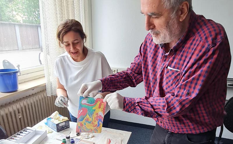 Ulm’da Tohum’da başlatılan ebru-mermer boyama çalışmaları her pazar 14.00’te gerçekleşiyor ve bu etkinlik haziran sonuna kadar sürecek.