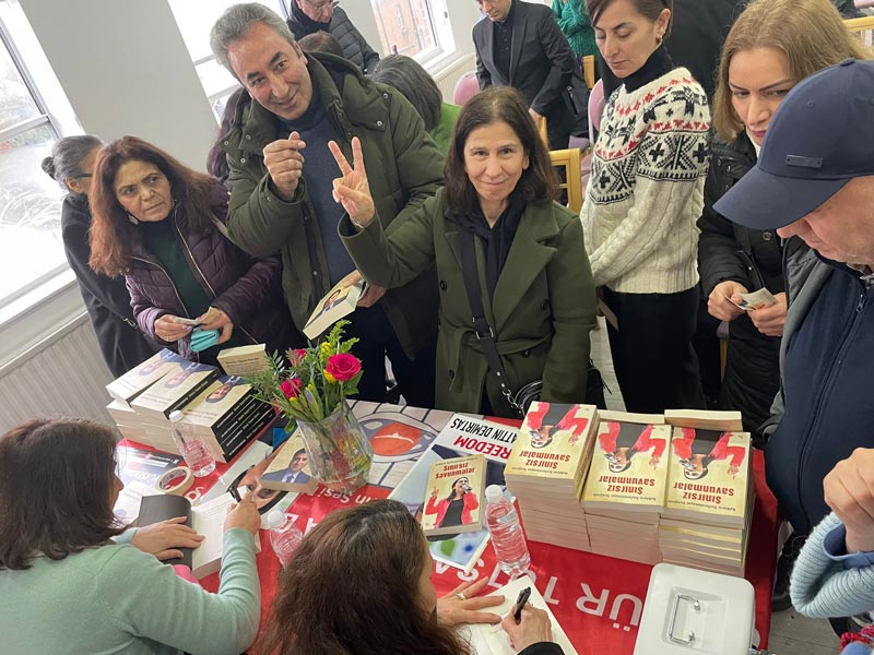 Söyleşi, soru ve cevapların ardından Yalçındağ ve Kemalbay’ın Figen Yüksekdağ ve Selahattin Demirtaş’ın kitaplarını imzalaması ile sonlandırıldı.