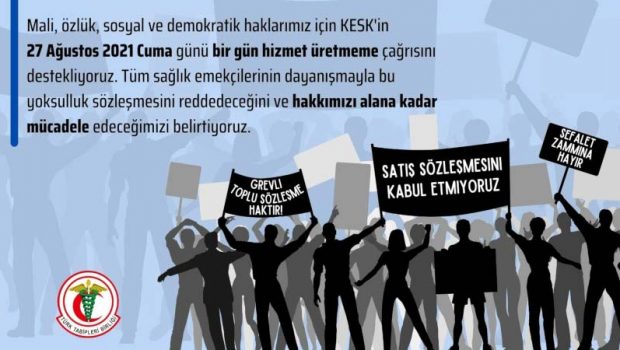 Türk Tabipleri Birliği Merkez Konseyi, “Mali, özlük, sosyal ve demokratik haklarımız için Kamu Emekçileri Sendikaları Konfederasyonunun (KESK) 27 Ağustos 2021 Cuma günü bir günlük hizmet üretmeme çağrısını ve Aile Hekimliği Sözleşme ve Ödeme Yönetmeliği nedeniyle aile hekimlerinin aynı gün iş bırakma kararını destekliyoruz. Üyelerimizin ve tüm sağlık emekçilerinin dayanışmayla bu yoksulluk ve ceza sözleşmelerini reddedeceğini ve hakkımızı alana kadar mücadele edeceğimizi belirtiyoruz” diye belirtti.