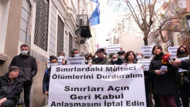 Göç ve mülteci hakları alanında çalışan kurumlar, Yunanistan sınırından geri itildikten sonra Edirne’de donarak hayatını kaybettikleri belirtilen 19 mülteci için Yunanistan’ın İstanbul Başkonsolosluğu önünde açıklama yaptı.