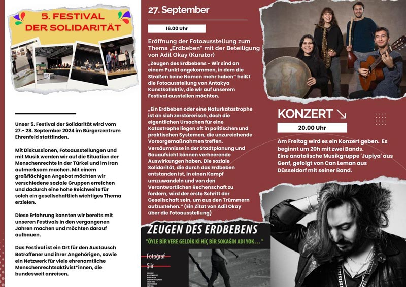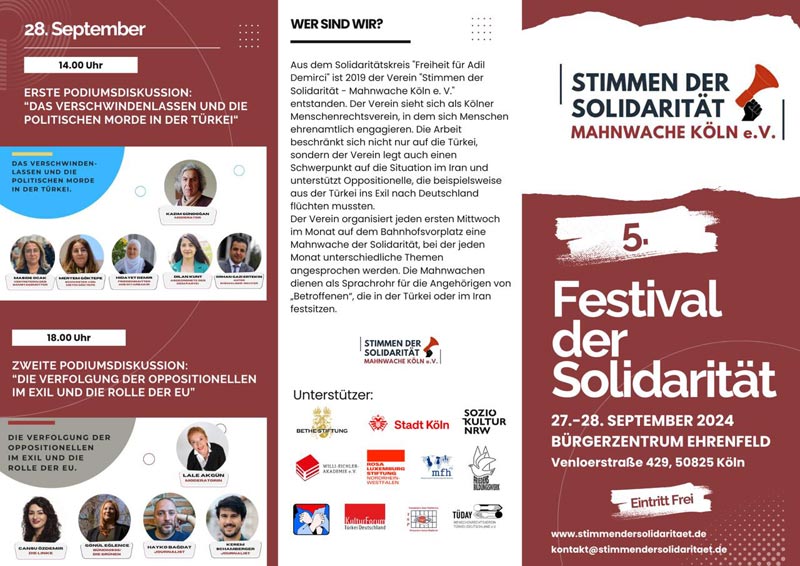 Dayanışmanın Sesi Derneği’nin öncülüğündeki yeni festivali tanıtan Georg Krautkrämer, “Köln’de düzenleyeceğimiz beşinci festivalde resim sergisi, konser ve paneller olacak. Bu festival aynı zamanda başta Alman vatandaşları olmak üzere Türkiye’de tutsak düşen kişilerin yakınlarını bir araya getiriyor. Dayanışmanın önemine vurgu yapıyoruz” dedi.