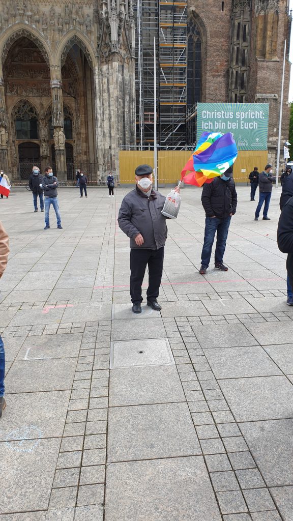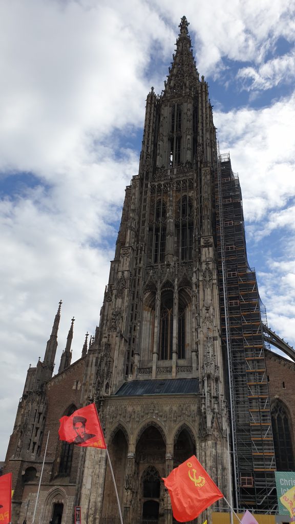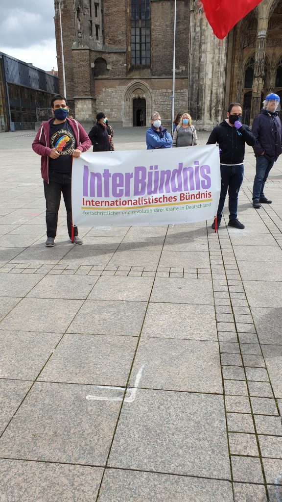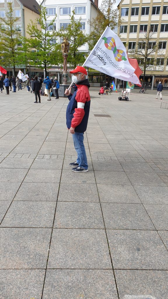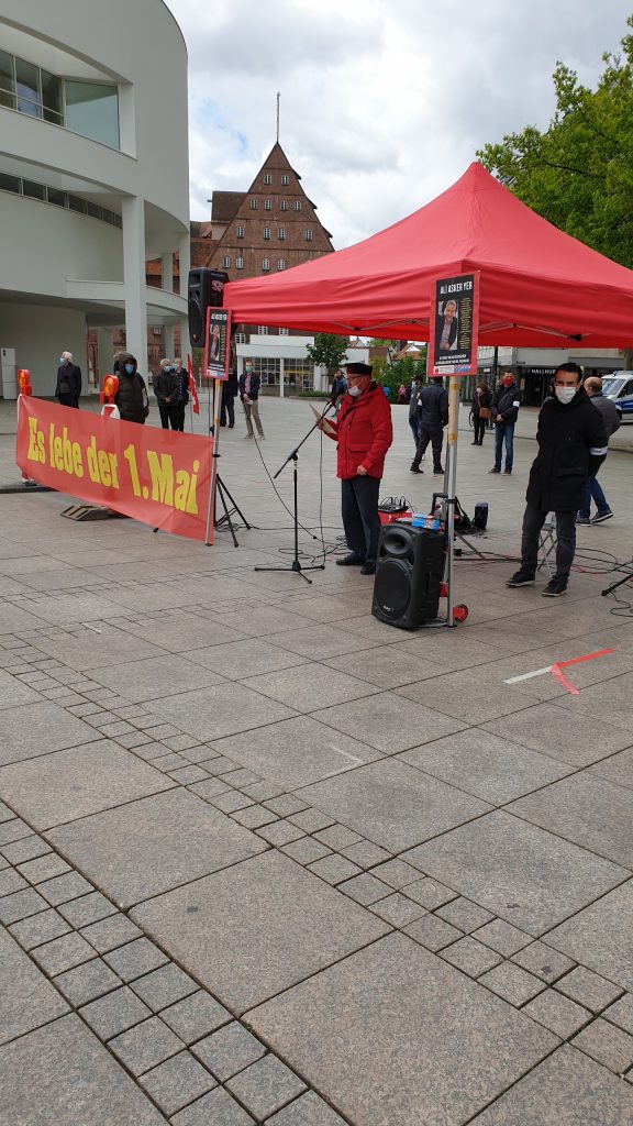 Ulm şehrinde bulunan örgütlenmelerden ADHF, AGEB, AGİF, ATİF, KON-MED, MLPD, SYKP, AKM, DKP, Grup Yorum Kolektifi, SKB, SYKP Kadın Meclisi, Halk Cephesi, Young Stuggel, Mor Kızıl Kolektif, HDP / HDK Bileşenleri, Partizan, PGI/MLM, MLKP, Umweltgewerkschaft, SDAJ, Rebell, YDG, Yeni Kadın, EnternasyonalBirlik taraftarları 1 Mayıs’ı coşkuyla kutladı. 1 Mayıs Tertip Komitesi tarafından yapılan açıklamada “Başvurumuz kabul edildi ve ilan ettiğimiz gibi; 1 Mayıs İşçi Bayramı’nın meydanda kutlanması için çalışmalarımızı başarıyla yürüttük ve etkinliğimiz coşkuyla tamamlandı” dendi. Miting Ulm kentinin en büyük meydanı olan Münsterplatz’da gerçekleştirildi. 1,5 saat süren mitinge zamanında gelinmesi ve sosyal mesafenin korunmasının önemi tüm eylemciler tarafından titizlikle uygulandı. Sosyal mesafe 2 metre olarak belirlenmiş ve tüm yerler tebeşirle işaretlenmişti..