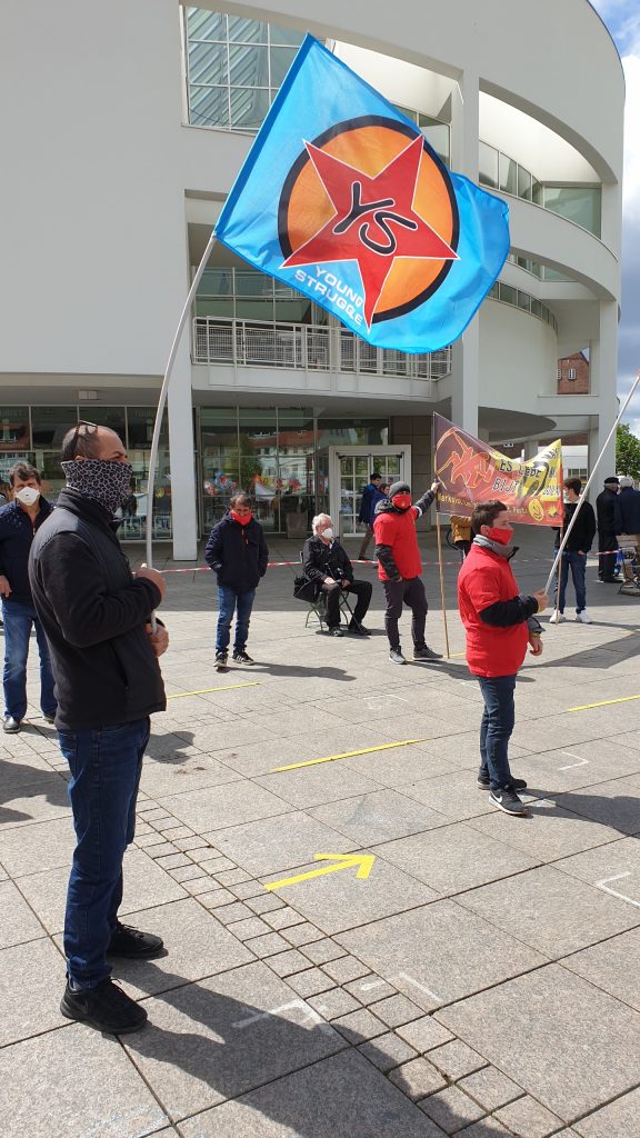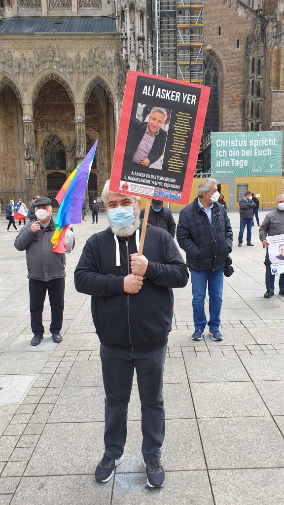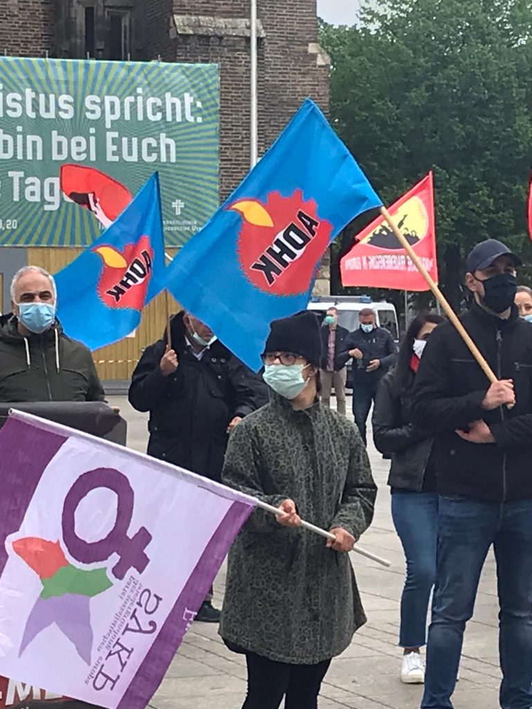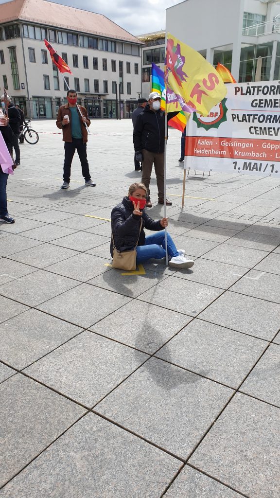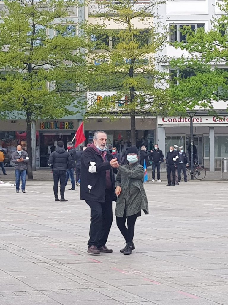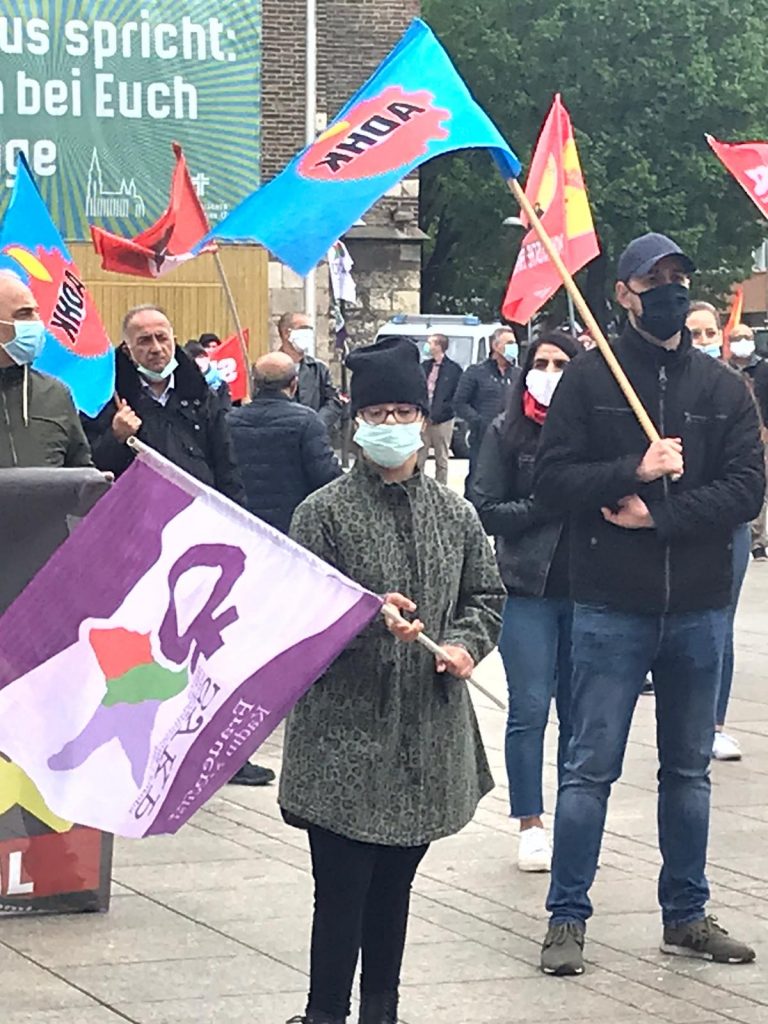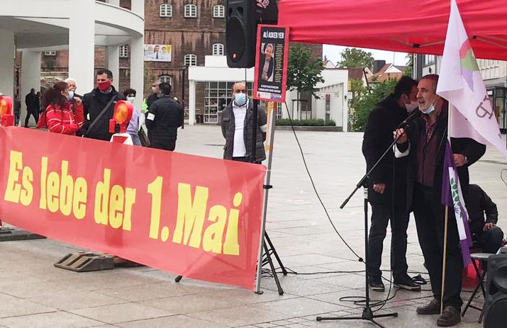 1 Mayıs’ta katledilenler ve tüm devrimciler için saygı duruşu Tüm dünyada 1 Mayıs’ta etkinliklerinde katledilenler, Grup Yorum’dan Helin Bölek, Mustafa Koçak ile yine geçtiğimiz günlerde hayatını kaybeden bölgenin devrimcilerinden Ali Asker Yer ve mücadele kaybedilen tüm devrimci, demokrat, yurtseverler için bir dakikalık saygı duruşu yapıldı. Ağırlıklı Almanca yapılan konuşmalarda, korona salgını, ekonomik kriz, mülteciler gibi konular ağırlıkla işlenirken, ekoloji, erkek şiddeti, çalışanların zor koşulları, patronların kar hırsı da işlenen bazı konu başlıklarıydı. 2-4 dakika olarak belirlenen konuşma hakkını hemen hemen tüm kurum temsilcileri kullandı.