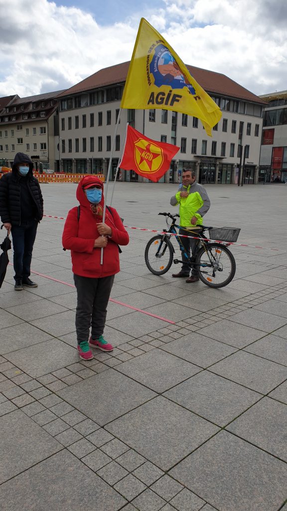 1. Mai Rede vom SYKP Frauenrat in Ulm(SYKP Kadın Meclisi'den temsilcinin Ulm 1 Mayıs konuşması)Yaşasın 1 Mayıs! Bijî Yek Gulan! Es lebe der 1. MaiBauen wir ein neues Leben auf!Der 1. Mai ist der Tag, an dem der Kampf und die Solidarität alle Arbeiter auf der ganzen Welt gegen die Ausbeutung von Lohnarbeitern, alle Arten von Druck, Herrschaft und Verfolgung der Arbeitgeber gegen die Arbeiter gefeiert wird. Es ist der Tag der Einheit, an dem die arbeitenden und unterdrückten Millionen ihren Willen und Forderungen zum Ausdruck bringen, die Welt der Arbeit gegen das Kapital zu errichten, um sich aus dem Leben in Hunger, der Armut und des Elends zu befreien.Der 1. Mai diesen Jahres wird in Zeiten einer Pandemie gefeiert, in denen das Leben für Arbeiter, Frauen und unterdrückten Völker noch viel schwieriger wird.Wir von SYKP rufen auf: Legt die Arbeit nieder gegen den Kapitalismus und die Pandiemie.Der 1. Mai ist der Tag der internationalen Einheit, des Kampfes und der Solidarität der Arbeiterklasse. Dieses Jahr in den Tagen der Pandemie, als die Arbeiterklasse, die Frauen und die unterdrückten Völker setzen wir uns für diejenigen ein, die ein um ein Vielfaches schwierigeres Leben haben. Der Kapitalismus hat nicht nur die Arbeiterklasse ausgebeutet, solange sie existierte;er brachte Arbeiter bis zu ihrem Tod. Hunderte von Stockwerken unter der Erde, in Minen, Landwirte, auf Baustellen, auf Werften, in Werkstätten, durch Vergiftung in einer Fabrik und vieles mehr…werden unter diesen umständen auch bei pandemien…Lasst uns eine neue Welt mit Frieden, Gesundheit und Solidarität aufbauen!In Deutschland, in der Türkei und auf der ganzen Welt, ist der 1. Mai 2020 der Tag der internationalen Arbeitereinheit, der Solidarität und des Kampfes, dieses Jahr unter anderen Umständen, begleitet von der Pandemie des Corona-Virus begegnet es die Rechte, Freiheiten, das Leben und die Demokratie der Arbeiter unter einer Angriffswelle, die in den vergangenen Jahren noch nicht gesehen wurde. Weder war die Entstehung der Pandemie wegen der Krise erlebte die Türkei in der Welt. Die Krise entstand nicht aufgrund der Pandemie, sie war bereits da, in Deutschland, der Türkei und auf der ganzen Welt. Während es bereits eine schwere Wirtschaftskrise gab, verschärfte die Pandemie diese Krise. Die Regierungen ignorierten die "öffentliche Gesundheit", indem sie Wirtschaftspakete in den Vordergrund rückten, die dem Kapital Priorität einräumen.Diese Pandemie ist eine ökologische Krise und auch eine Krise des Gesundheitssystems. Ich muss mich hier leider kurzhalten, da ich nicht die Zeit der anderen Redner wegnehmen will.Wie gesagt bürgt diese Pandemie viele Krisen, auch eine Krise der Flüchtlingspolitik. Wir sollten also auch an die Flüchtlinge in Griechenland, in der Türkei, auf dem Mittelmeer nicht vergessen und Solidarität zeigen.Deshalb lasst uns morgen an der Aktion teilnehmen, die die Organisation Seebrücke um 16 Uhr auf diesem Platz für Migranten durchführen wird.Ob wie hier auf dem Platz, aus unseren Häusern, Balkonen, Fenstern, im Internet, am Telefon, auf den Straßen, in den Fabriken, auf den Bauernhöfen oder in den Schulen… Lasst uns unsere Stimme gegen den Kapitalismus erheben, wo immer wir stehen! Wir erheben uns gemeinsam überall!Der 1. Mai ist der internationale Solidaritätstag von den werktätigen Arbeitern WIR FORDERN:Kostenlose Gesundheitsversorgung für alleEgal ob Frau oder Mann – diejenigen, die zu Hause bleiben "müssen", müssen weiterhin bezahlt werdenNicht-obligatorische Produktionen müssen gestoppt werdenEntlassungen müssen verboten werden, Arbeitnehmer müssen bezahlten Urlaub erhaltenFür diejenigen, die arbeiten müssen, müssen maximale Vorkehrungen getroffen werdenDie Reichen müssen gegen die Corona-Krise extra besteuert werden.Industrielle Landwirtschaft und industrielle Tierhaltung müssen gestoppt werdenGrenzen öffnen, Lager evakuieren; Freiheit für Einwanderer!Yaşasın 1 Mayıs! Bijî Yek Gulan! Es lebe der 1. MaiEs lebe die Revolution und der Sozialismus!Partei der Sozialistischen Wiedergründung (SYKP) Frauenrat-Europahttps://avrupademokrat2.com/ulmda-1-mayis-meydanda-coskuyla-kutlandi/