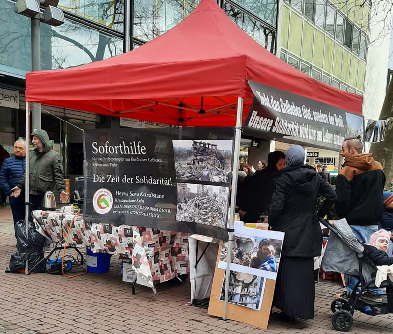 ADGB Ulm bileşenleri olarak Ulm şehir merkezinde açılan dayanışma çadırında, 1530 euro toplaranak ve Kürt Kızılay’ı Heyva Sor a Kurdistanê’ye gönderildi.