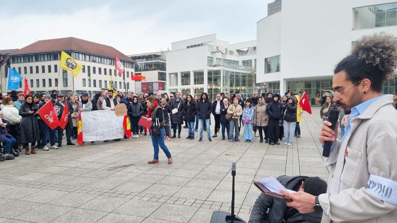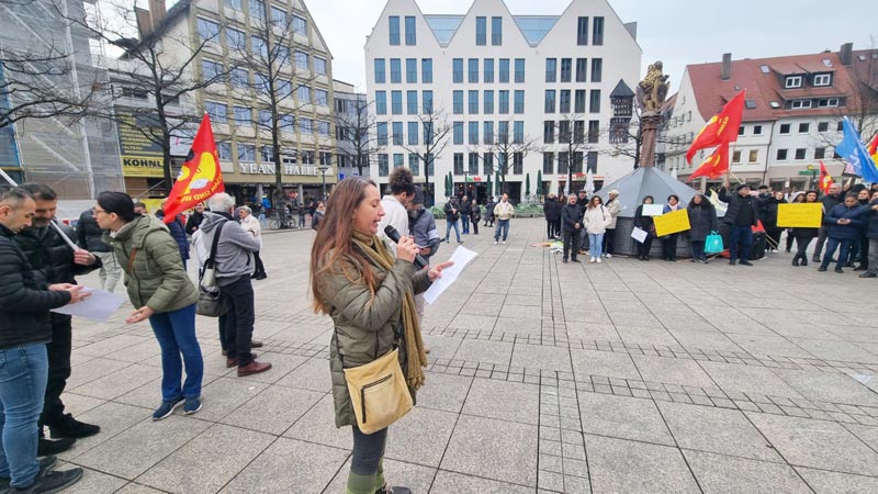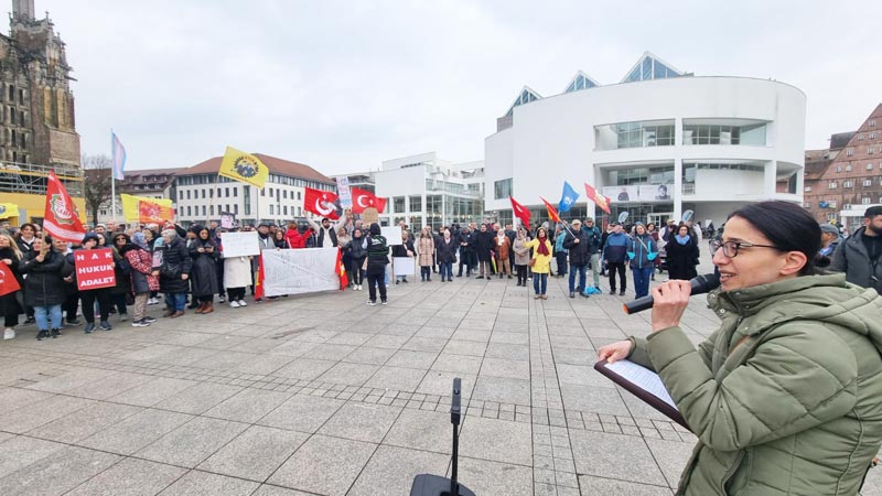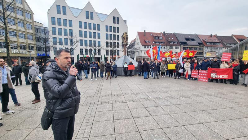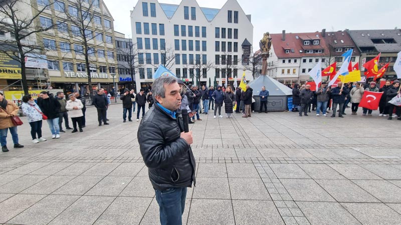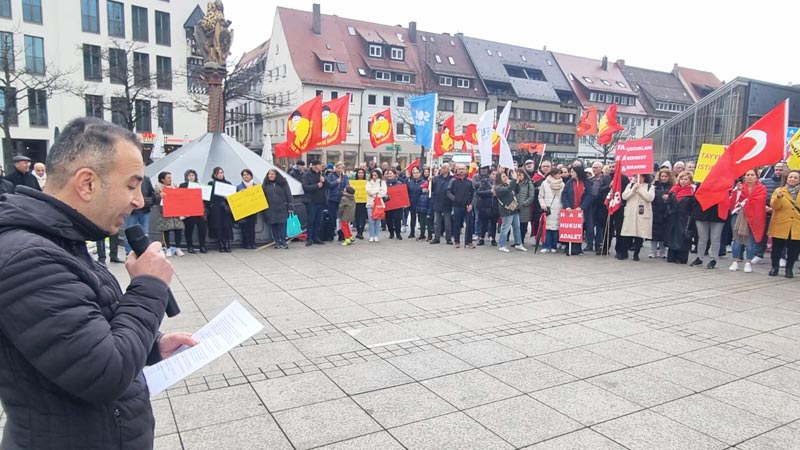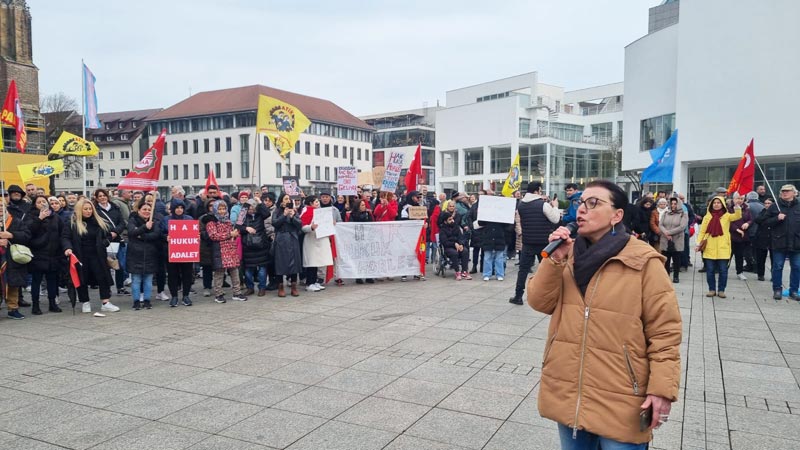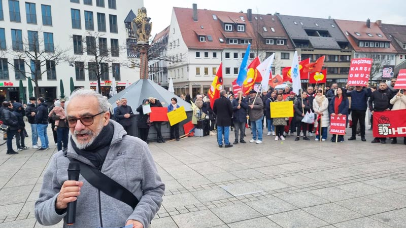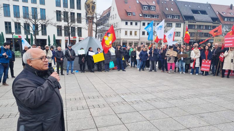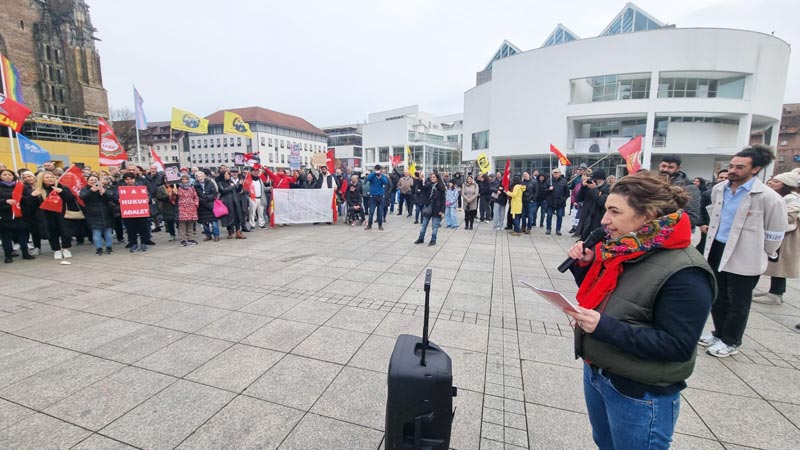 Daha sonra konuşmacılardan Cemal Bozoğlu “Türkiye’deki demokrasi ve özgürlük mücadelesinin başarıya ulaşması için halktan halka dayanışma örgütlememiz gerekiyor” derken, Banu Cengiz Öner “Demokratik olanakları kullanarak, özgürlük söylemleriyle iktidara gelenler, ilk günden itibaren son derece sistematik bir biçimde adım adım karanlığın, korkunun imparatorluğunu kurdular” dedi. AKM Ulm Başkanı Şirin Eral-Ok “Faşizm bir arada yaşamanın düşmanıdır ve ona her şeyimizle karşı koymalıyız” açıklamasında bulunurken, DİDF adına yapılan konuşmada “Türkiye‘de hükümetin halk iradesine karşı darbe girişimini kınıyoruz! Ekrem İmamoğlu ve tüm gözaltına alınanlar derhal serbest bırakılsın!” dendi.