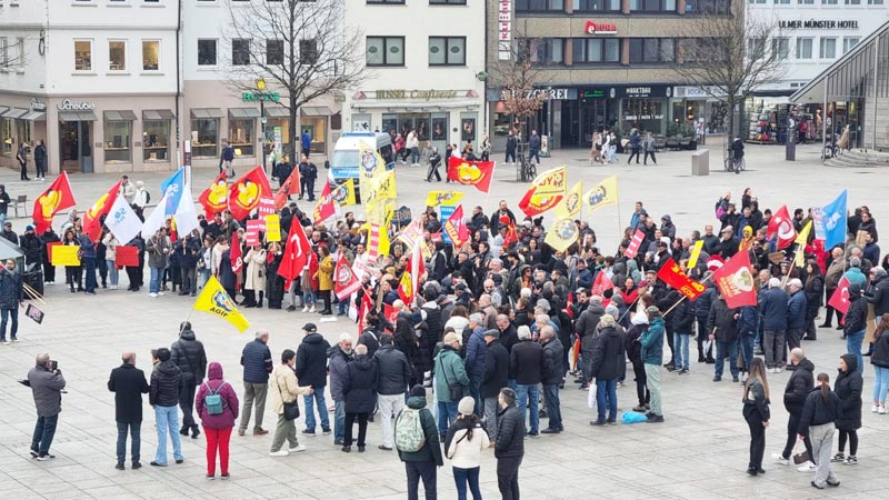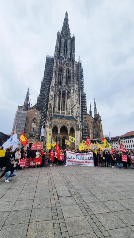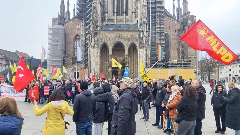Bir çok kentte olduğu gibi, Ulm’da da çok sayıda kurumun bir araya gelerek oluşturduğu “Ulm – Faşizme Karşı Birlik” tarafından oluşturulan girişimce gerçekleştirilen Şehir merkezindeki eylem, olgun bir havada geçti. Münsterplatz meydanındaki gösteriye 300’ün üzerinde kişi katılırken, renkli görüntüler de oluştu.