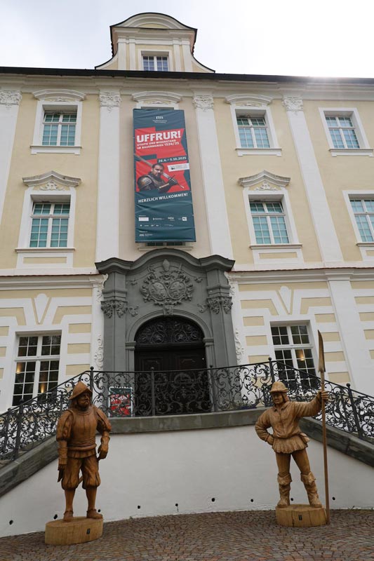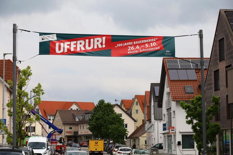 Geçtiğimiz günlerde Ulm yakınındaki Bad Schusserried kasabasında açılmış olan sergiyi görmeye gittik. Avrupa’nın Enerji ve İklim Koruma Birliği tarafında Altın Enerji ödülü verilmiş, nüfusu 9 bin olan Bad Schussenried’in girişinden itibaren her yerde sokakta, esnafların camekanlarında, koca panolarda, ne yana bakılırsa bakılsın Köylüler Savaşı sergisinin ilanlarını görmek mümkün.