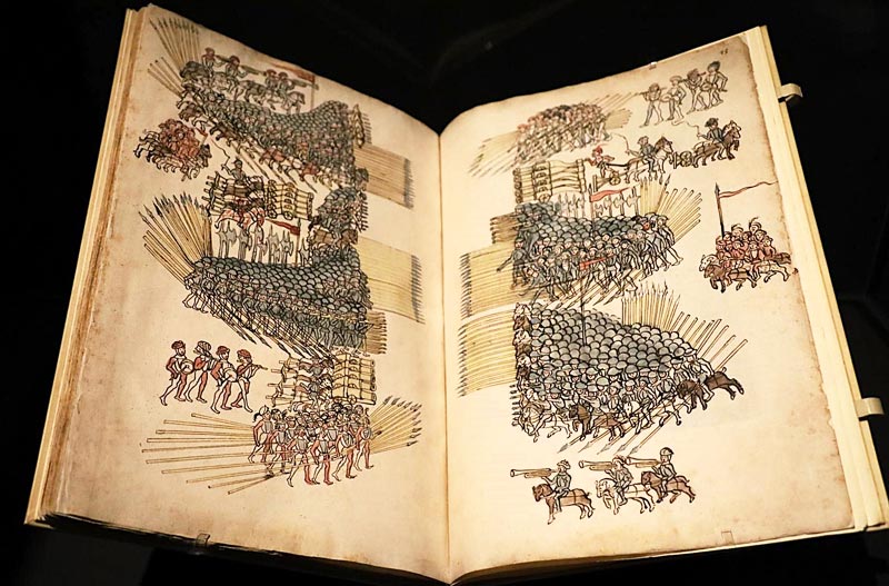 Oldukça zengin olan sergide köy topluluğunun eşit üyeleri olarak yoksul kadınların rolü ve kardeşlik konuları, el yazmaları, savaşın yoğun geçtiği alanlar, kiliselerin rolü, her iki tarafın sahip olduğu askeri güç, silahlar görülmeye değer bir. Şövalyelerin zırhı, köylülerin birliğine temel olan 12 madde, propaganda materyalleri, kiliselerin rolü, dünyaca tanınmış ressam Albrecht Dürer’ in köylü çizimleri, köylülerin cesaretlerini gösteren objeler ile önemli bir çalışma.